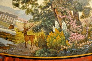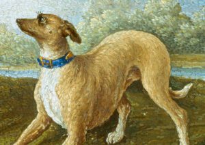 Detail of micromosaic panel, "Two greyhounds", by G. Wekler 1853, cm. 14,6 x 10,5 , courtesy Sir A. Gilbert Collection, V&A London.