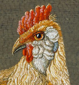 Detail of micromosaic panel, "Strutting Cockerel", by Georgi Wekler, ca. 1834, cm. 8,6 x 6,9 , courtesy Sir A. Gilbert Collection, V&A London.